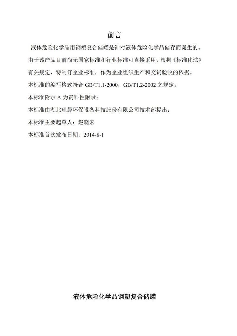 液態(tài)危險化學(xué)品用鋼塑復(fù)合儲罐企業(yè)標(biāo)準(zhǔn)點擊查看:鋼襯塑儲罐企業(yè)標(biāo)準(zhǔn)