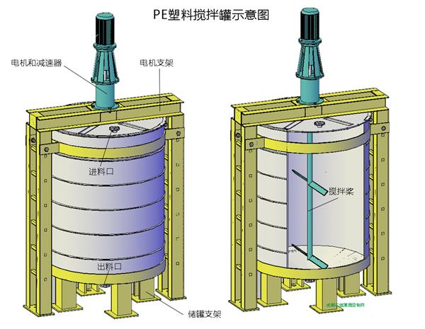 特別說明:PE罐為模具生產,尺寸不可變更,變更管口有條件限制,具體情況請與客服聯系獲得確認.PE罐耐腐蝕性能非常好,適合于密度1.3以下介質。儲罐頂部一般設計為開口大法蘭,也可做成密封式,需增加檢修人孔。頂部可另外增加投藥口。電機與減速機的選擇一般由客戶指定,如客戶沒有設計要求,可與我們聯系時由我們為您選擇參考。塑料攪拌罐不能承受來自電機的壓力,故需制作電機支架,客戶有條件也可自行自作支架。PE攪拌罐有兩種樣式,平底罐可直接放置地面使用,錐底罐需要制作儲罐支架。更多問題歡迎來電咨詢。