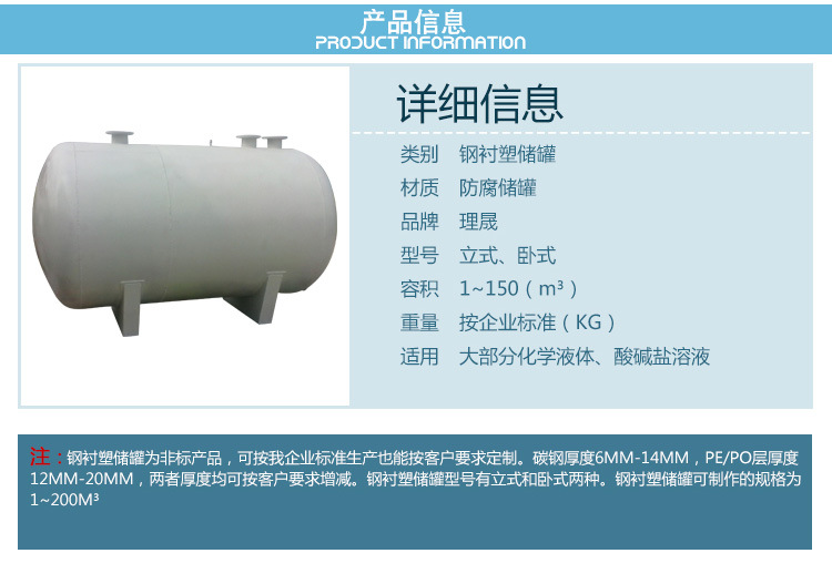 14、加厚的特殊鋼襯塑PE/PO儲罐,可耐規定的壓力和真空。